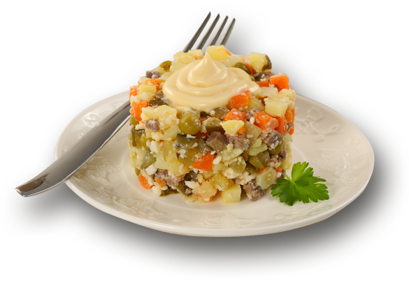 Разрабатывая рецепты салатов, мы стремимся включать в ассортимент и самые любимые блюда домашней кухни, и самые популярные рецепты кухни мира, и уникальные авторские находки нашего шеф-повара.