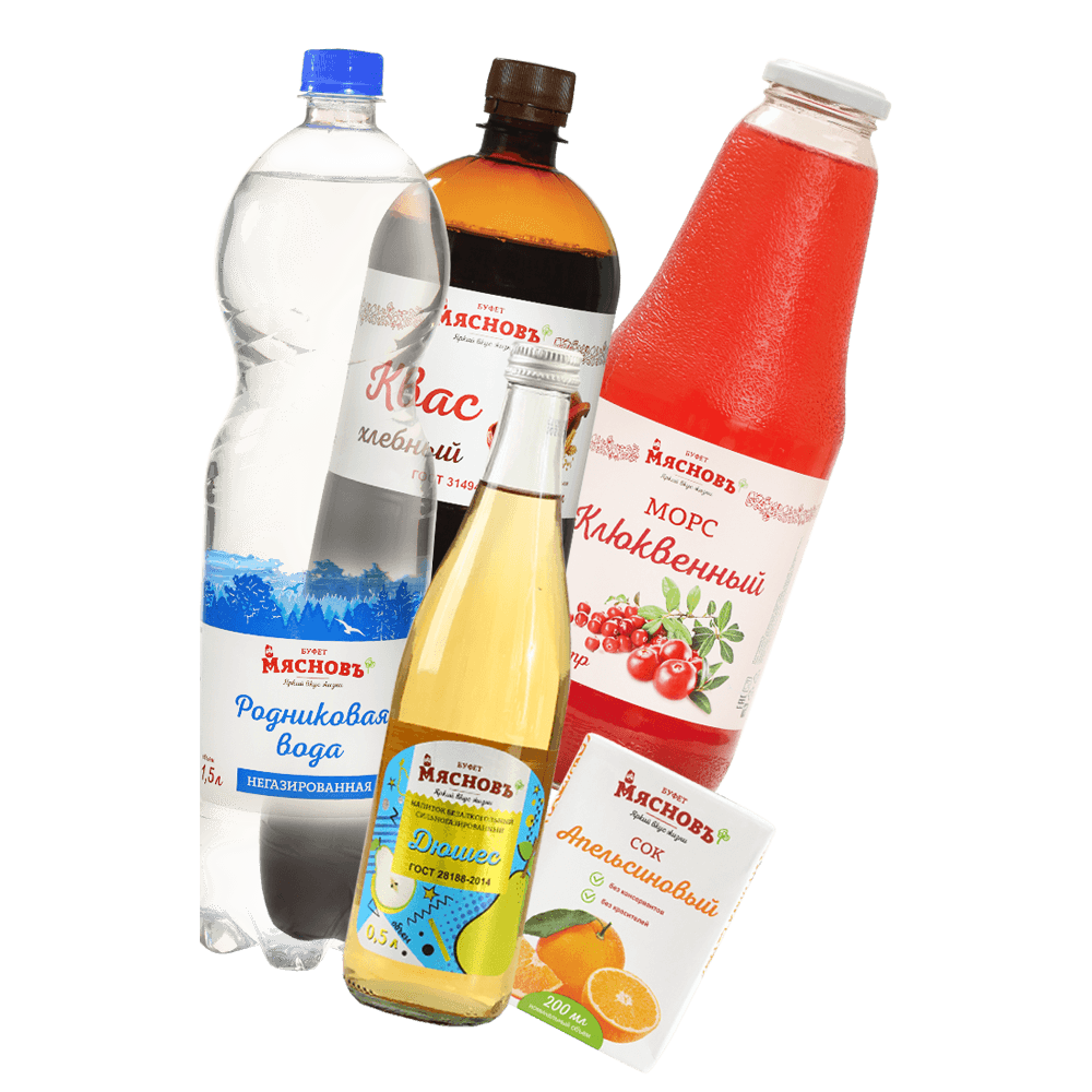 Если хочется более ярких вкусов – смело берите хлебный квас МясновЪ БУФЕТ: и освежитесь, и окрошку заправите. А еще, у нас есть натуральные соки, лимонады, нектары, морсы – всего и за лето не перепробовать. Но как приятно попытаться!